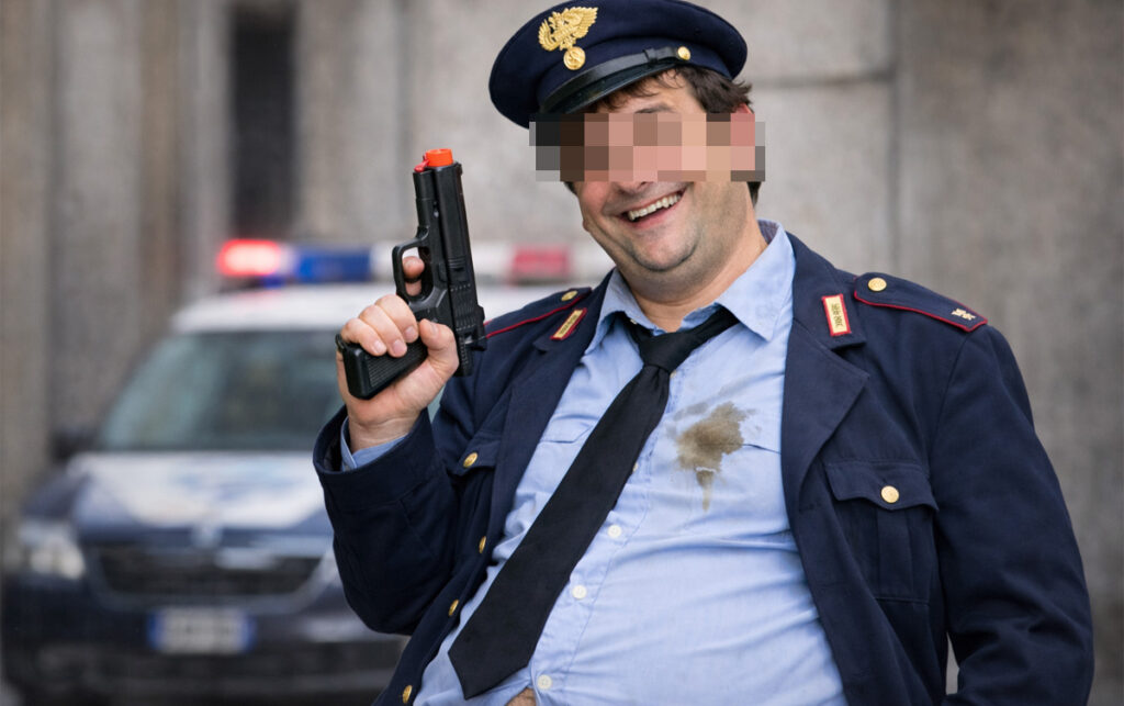 Si legge dal verbale pubblicato illegalmente da Fanpage: “Credevano tutti che fossi un vero poliziotto, il mio sogno si era avverato. Ma non dovevo farmi scoprire, così ho iniziato a comportarmi come tutti i poliziotti”. Essendo un po’ tardo di mente, G. G. ha iniziato a imitare le mele marce della Polizia: “Scroccavo scopate gratis dalle troie di strada, manganellavo gli studenti andandoli a prendere direttamente nelle classi, avvisavo i mafiosi dei blitz, chiedevo tangenti agli spacciatori per chiudere un occhio, ma è stato il seminare pistole di plastica in giro che mi ha tradito, accidenti”.