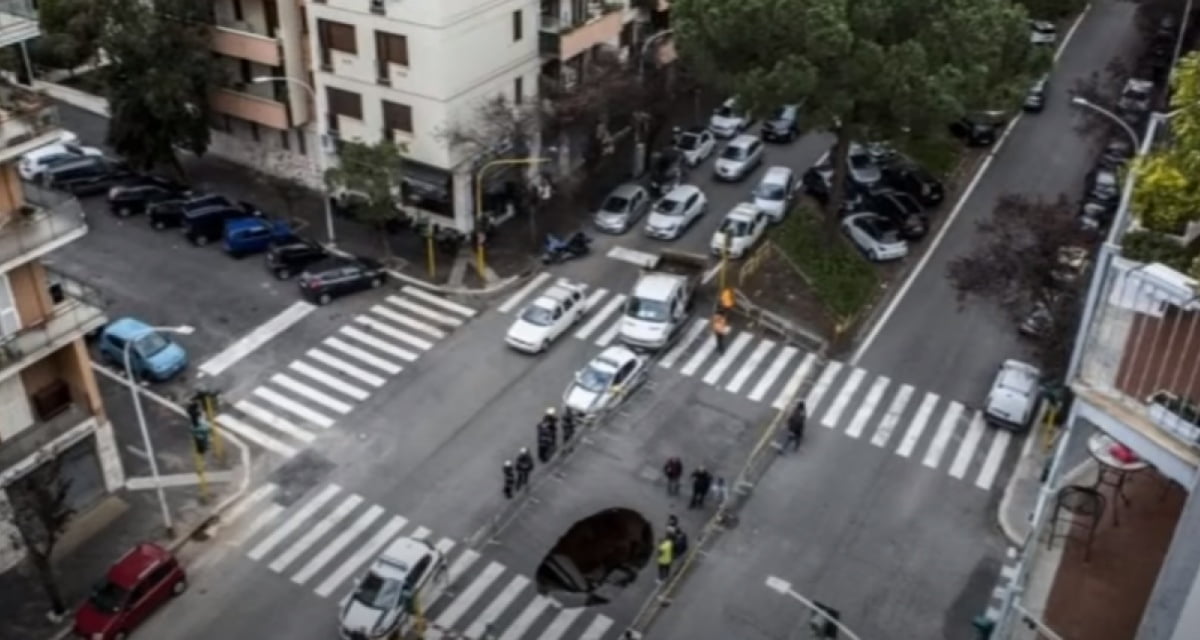 Napoli. Voragine inghiotte auto che stava per investire uomo sulle strisce pedonali