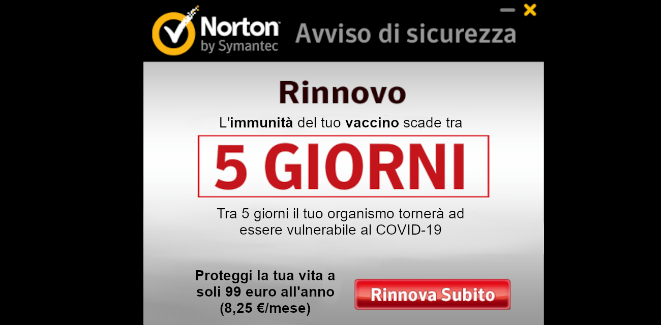 Norton lancia il suo vaccino: “Iniezione gratis, ma dopo tre mesi immunità a pagamento”