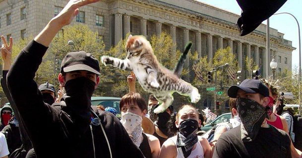 Cucciolata di gattini interrompe manifestazione di Black Bloc