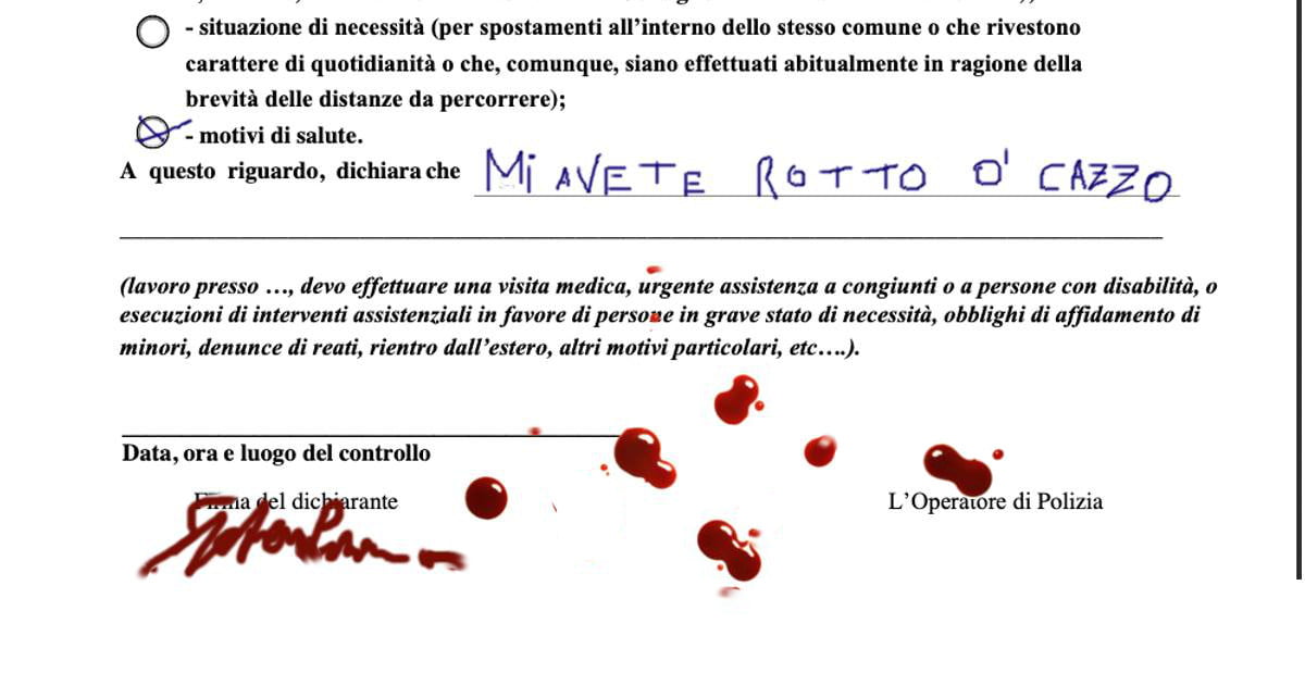 Coronavirus, nuovo decreto: l’autocertificazione dovrà essere firmata col sangue