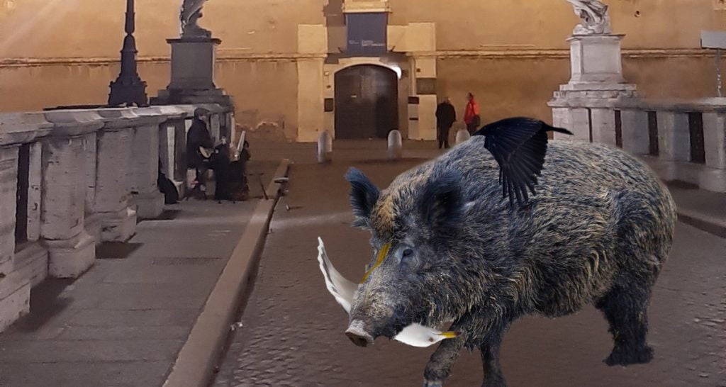 Foto dell’anno. Vince Ada da Roma con la cornacchia abbracciata al cinghiale che mangia un gabbiano