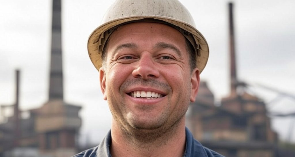 Operaio raccoglie tutte le viti e le rondelle avanzate dai montaggi e crea un nuovo polo siderurgico