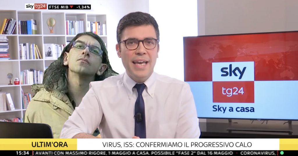 Milano – Clamoroso fuori programma nel pomeriggio di ieri durante un collegamento con un giornalista Sky dalla sua abitazione. Il giornalista Fabio Vitale, anchorman dell’edizione di “Sky a casa”, stava riepilogando le ultime notizie della giornata, quando alle sue spalle è spuntato Gabriele Paolini, noto per aver disturbato migliaia di collegamenti tv, oltre che per aver ricevuto un calcio nei coglioni da Paolo Frajese.