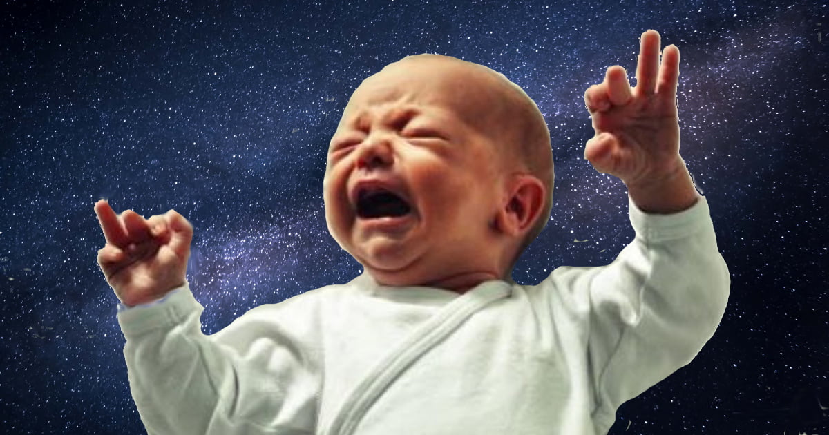 Neonato realizza che siamo soli nell’Universo e scoppia a piangere