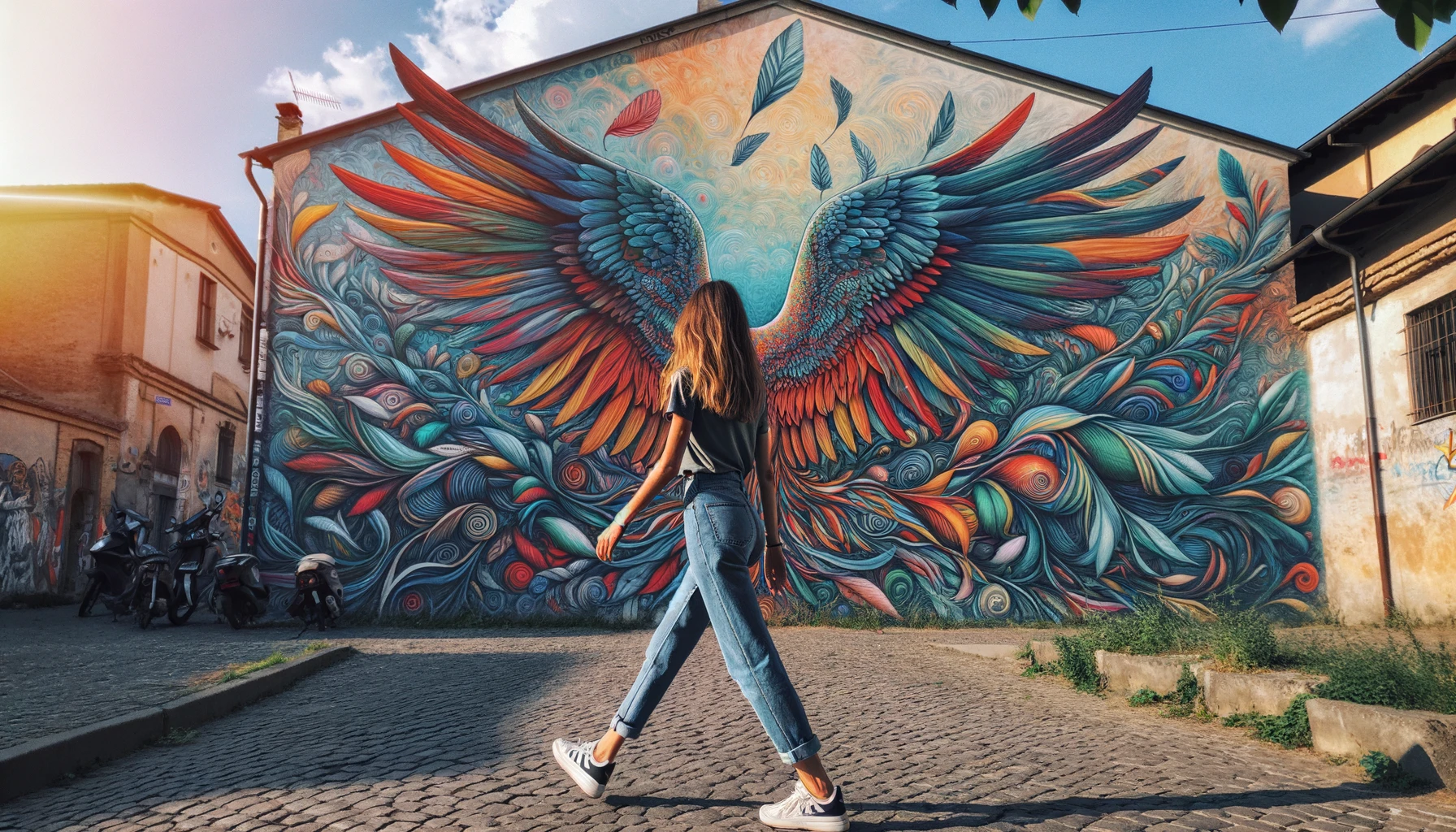 Ragazza passa davanti a murale con le ali e decide di non farsi la foto