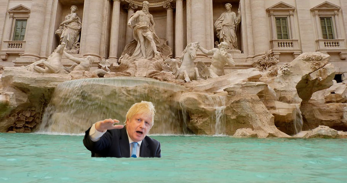 “Non lascio niente all’Europa”: Boris Johnson si riprende la moneta lanciata nella fontana di Trevi