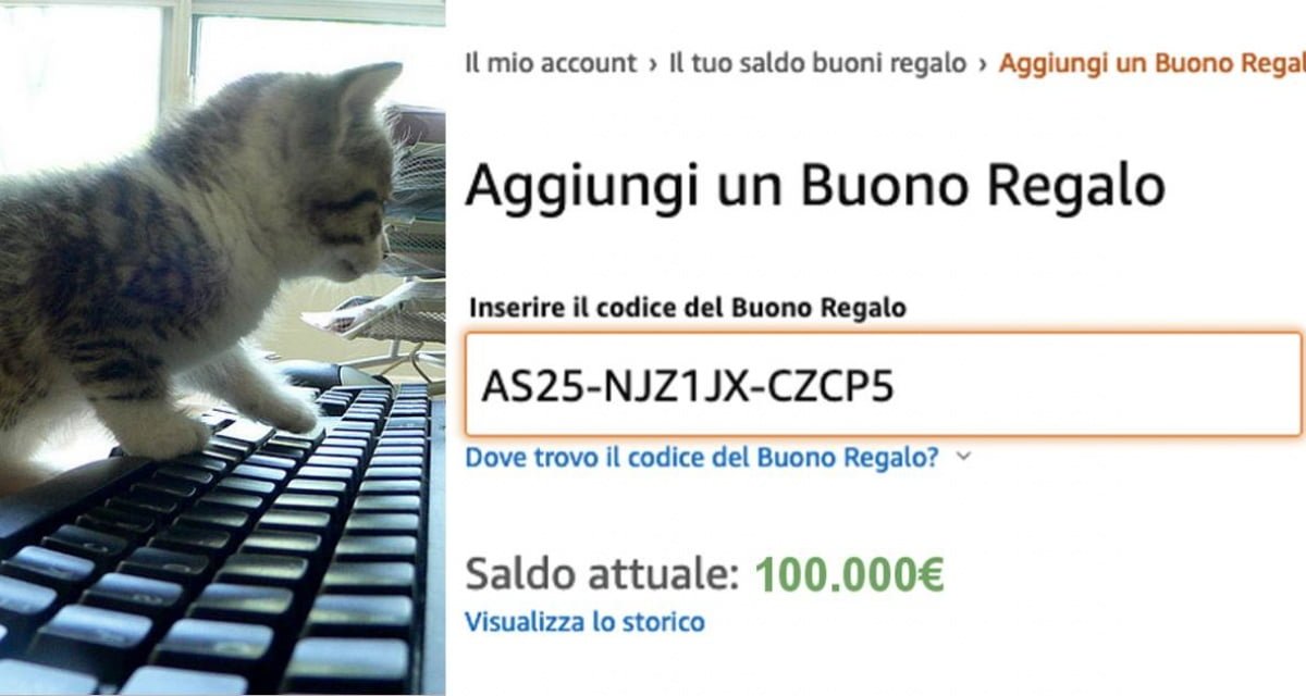 Gatto pigia tasti a caso sul sito di Amazon e attiva un buono da 100.000 euro